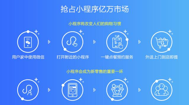 一些精明有资本的商家的小程序已经上线使用,但是因为小程序开发门槛高、周期长、成本大,致使其他中小商家望而却步。但是,如果因为这些开发难题就放弃小程序的商家是愚蠢的,这相当放弃了绝大部分微信精准的用户。