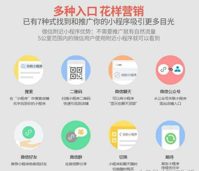 作为微信的亲儿子,微信给小程序了很多福利入口,比如“发现”、公众号文章嵌入、朋友分享、群分享、搜一搜、扫码直接进等等。这些都是隐藏的巨大福利!